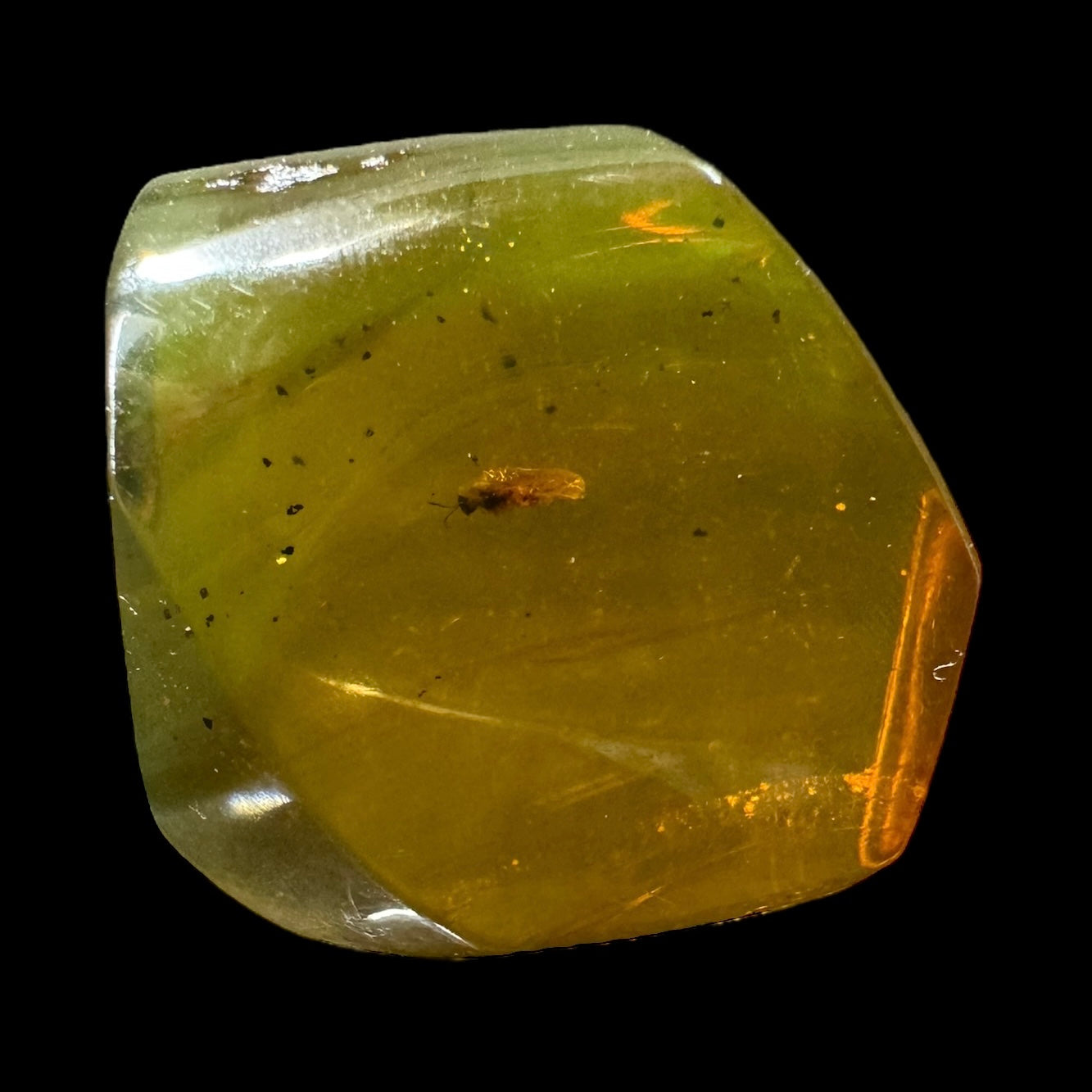 Amber is the fossilized resinous tree sap from conifer trees, which over the course of millions of years becomes solid while retaining the semitransparent yellowish hue of tree sap. While in its sticky gel state, it is not uncommon for insects and other small animals to become trapped within tree sap, and under optimal conditions these insects will be clearly visible within the fossilized amber pieces. These high quality and exceptional color Chiapan Amber originated in Mexico during the Oligocene, roughly 20 million years ago. Each contains at least one (most several) clearly visible insect.