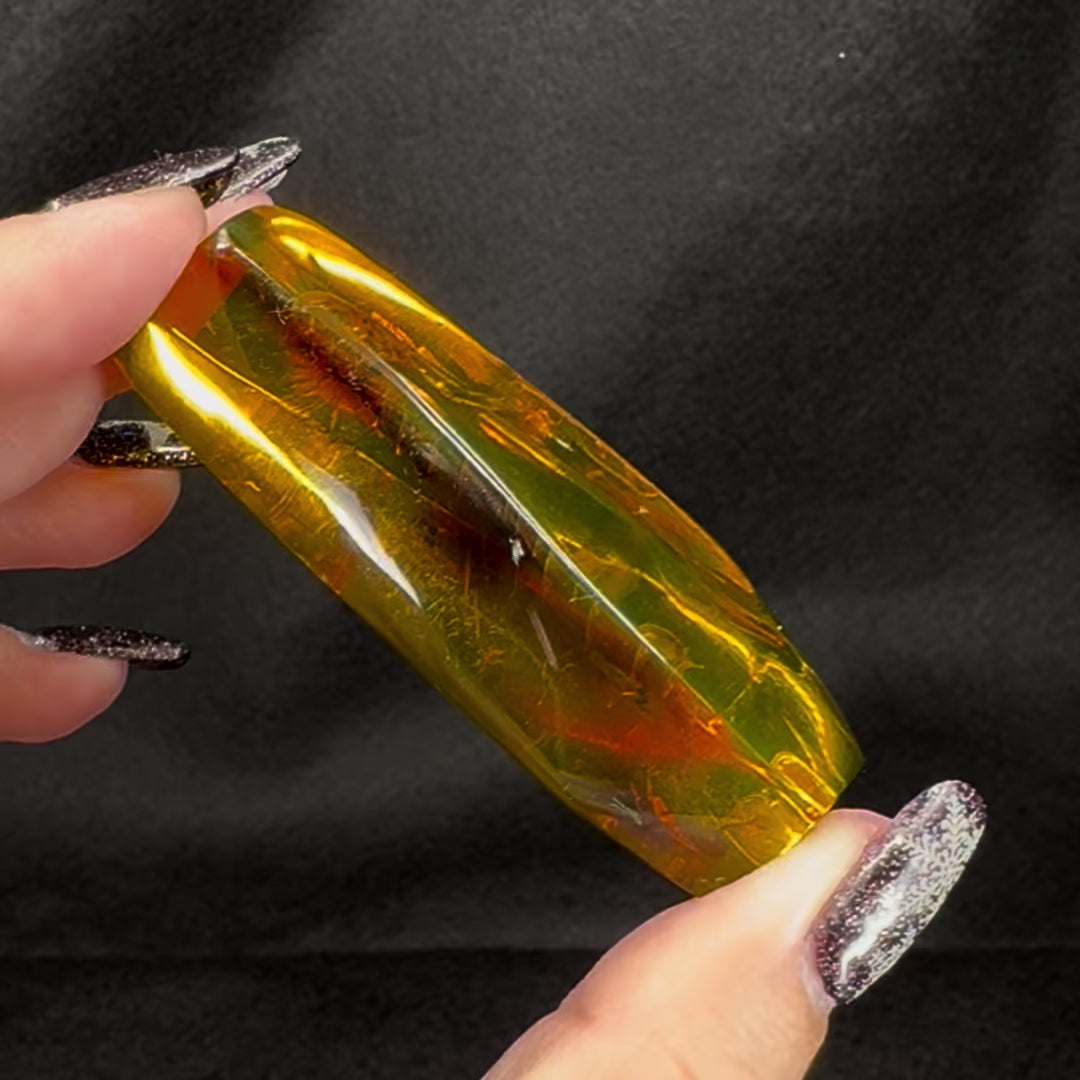 Amber is the fossilized resinous tree sap from conifer trees, which over the course of millions of years becomes solid while retaining the semitransparent yellowish hue of tree sap. While in its sticky gel state, it is not uncommon for insects and other small animals to become trapped within tree sap, and under optimal conditions these insects will be clearly visible within the fossilized amber pieces. These high quality and exceptional color Chiapan Amber originated in Mexico during the Oligocene, roughly 20 million years ago. Each contains at least one (most several) clearly visible insect.