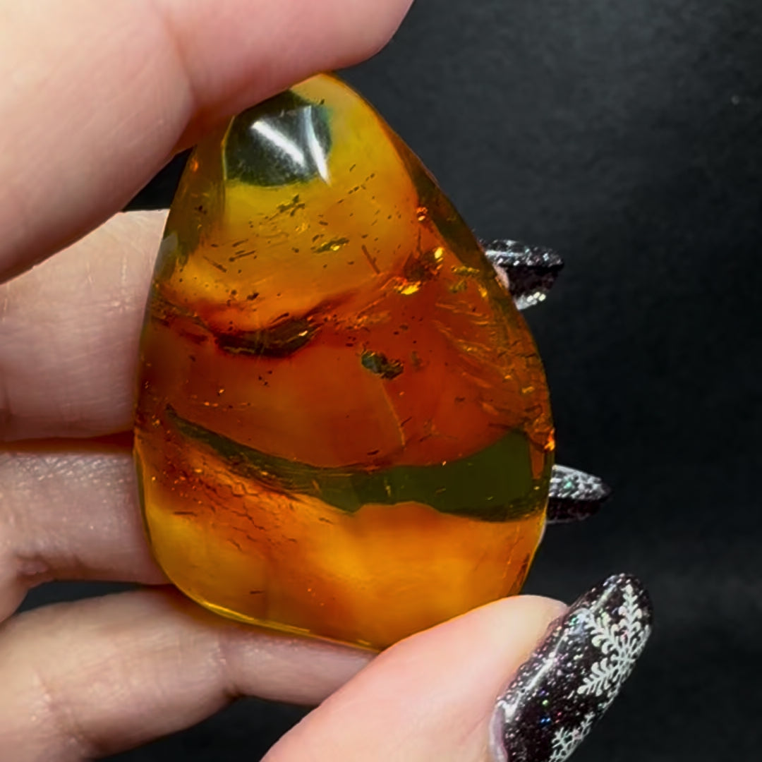 Amber is the fossilized resinous tree sap from conifer trees, which over the course of millions of years becomes solid while retaining the semitransparent yellowish hue of tree sap. While in its sticky gel state, it is not uncommon for insects and other small animals to become trapped within tree sap, and under optimal conditions these insects will be clearly visible within the fossilized amber pieces. These high quality and exceptional color Chiapan Amber originated in Mexico during the Oligocene, roughly 20 million years ago. Each contains at least one (most several) clearly visible insect.