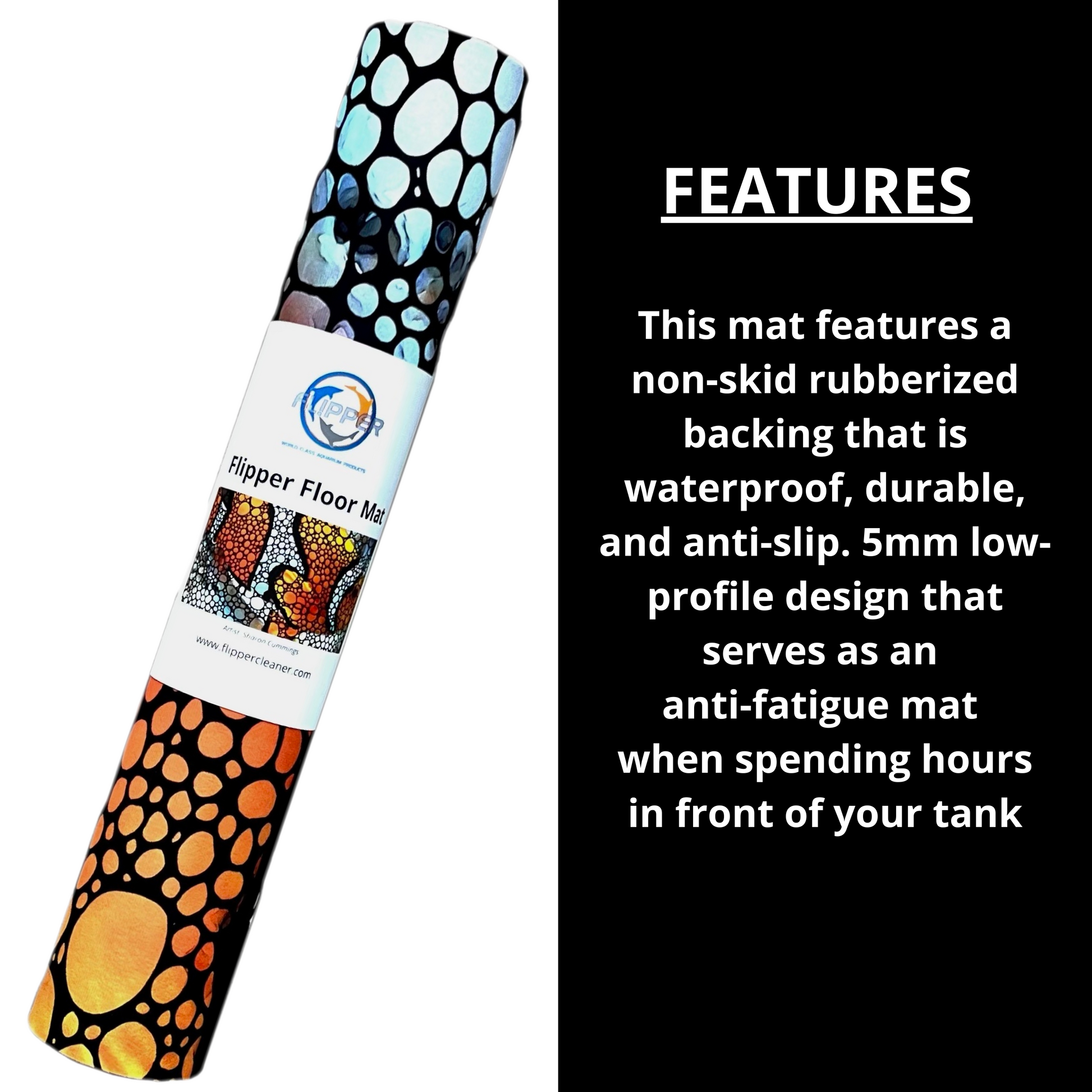 - FEATURES – This mat features a non-skid rubberized backing that is waterproof, durable, and anti-slip. 5mm low-profile design that serves as an anti-fatigue mat when spending hours in front of your tank.