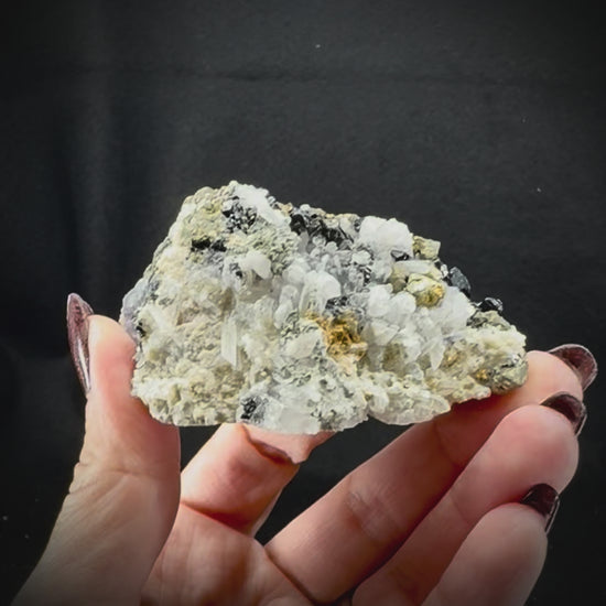 These highly variable pieces contain Fluorite crystal clusters within different matrixes, including feldspar, fine quartz crystals, botryoidal quartz, and other materials all originating from the Yindu Mine in Inner Mongolia, China. No two are alike, and each has its own unique distinct character.Â