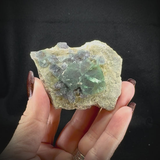 These highly variable pieces contain Fluorite crystal clusters within different matrixes, including feldspar, fine quartz crystals, botryoidal quartz, and other materials all originating from the Yindu Mine in Inner Mongolia, China. No two are alike, and each has its own unique distinct character.Â