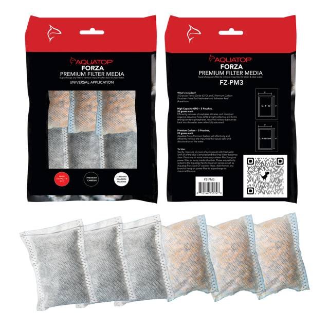 Upgrade your aquarium filtration with Forza Premium Aquarium Filter Media, a professional-grade activated carbon and GFO media pack designed for reef aquariums and saltwater tanks, and fully compatible with canister filters, hang-on-back power filters, and sump filtration systems.