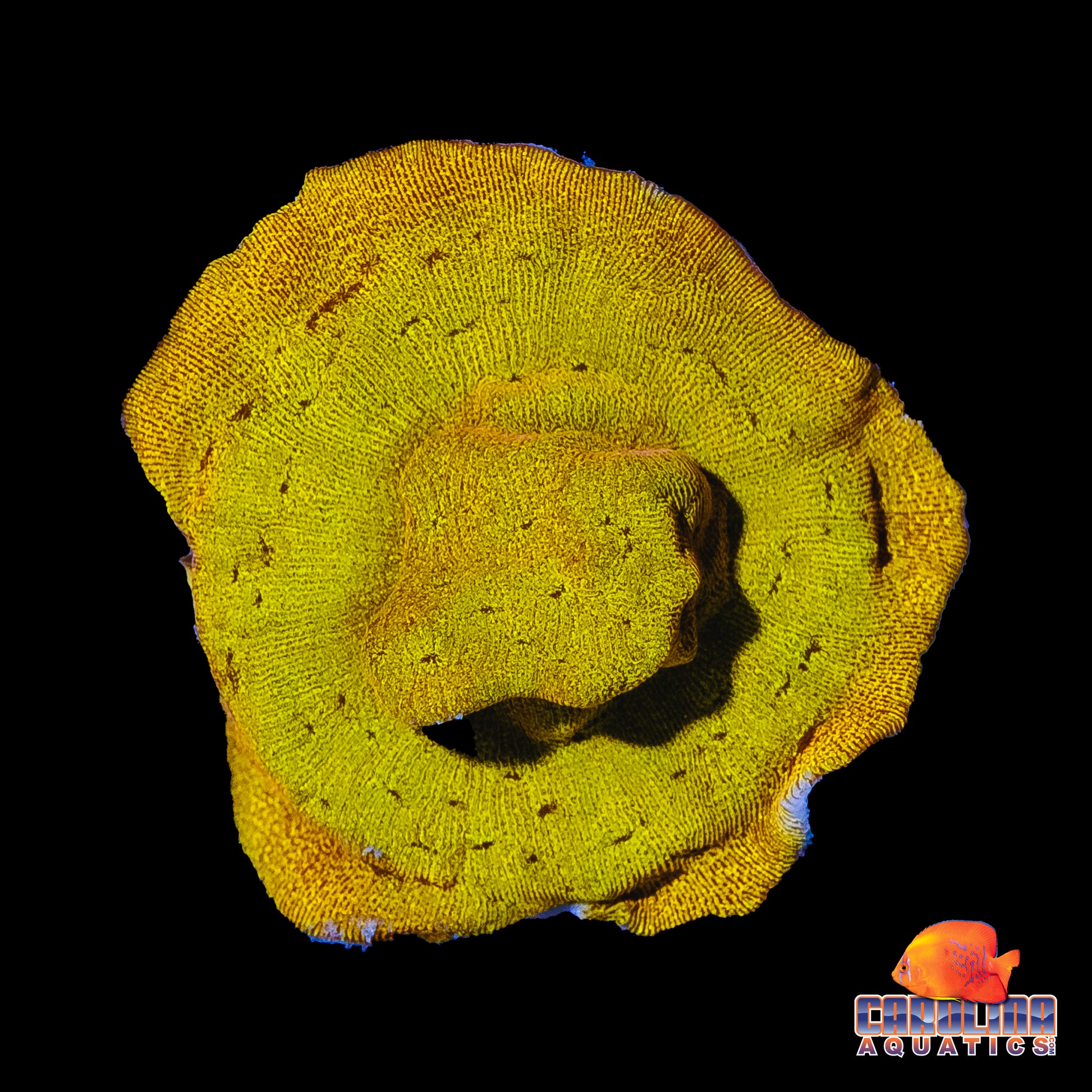 Login to view price.This Leptoseris sp. coral has an intense gold color, so bright it appears to be glowing. A fast growing encrusting coral that does best in low to moderate light intensity.