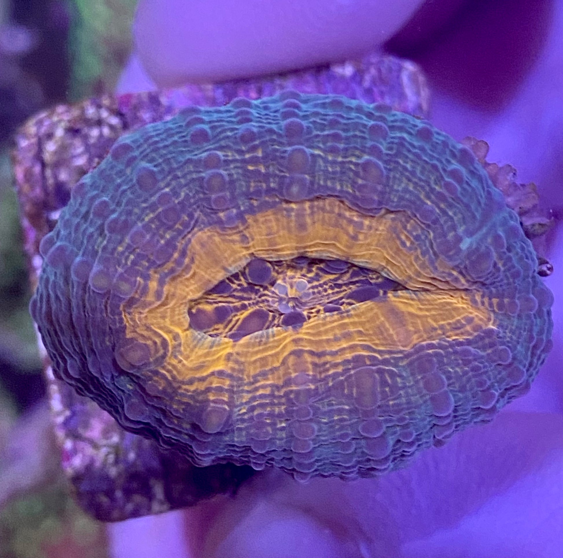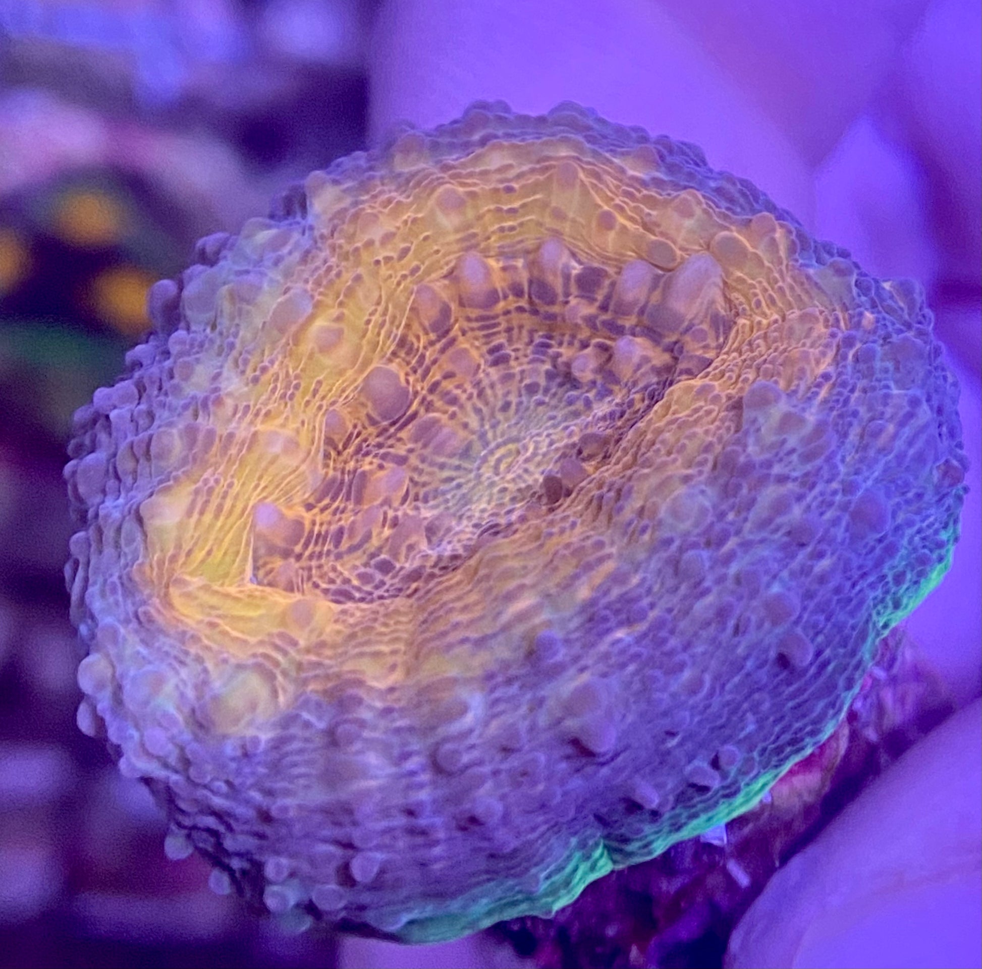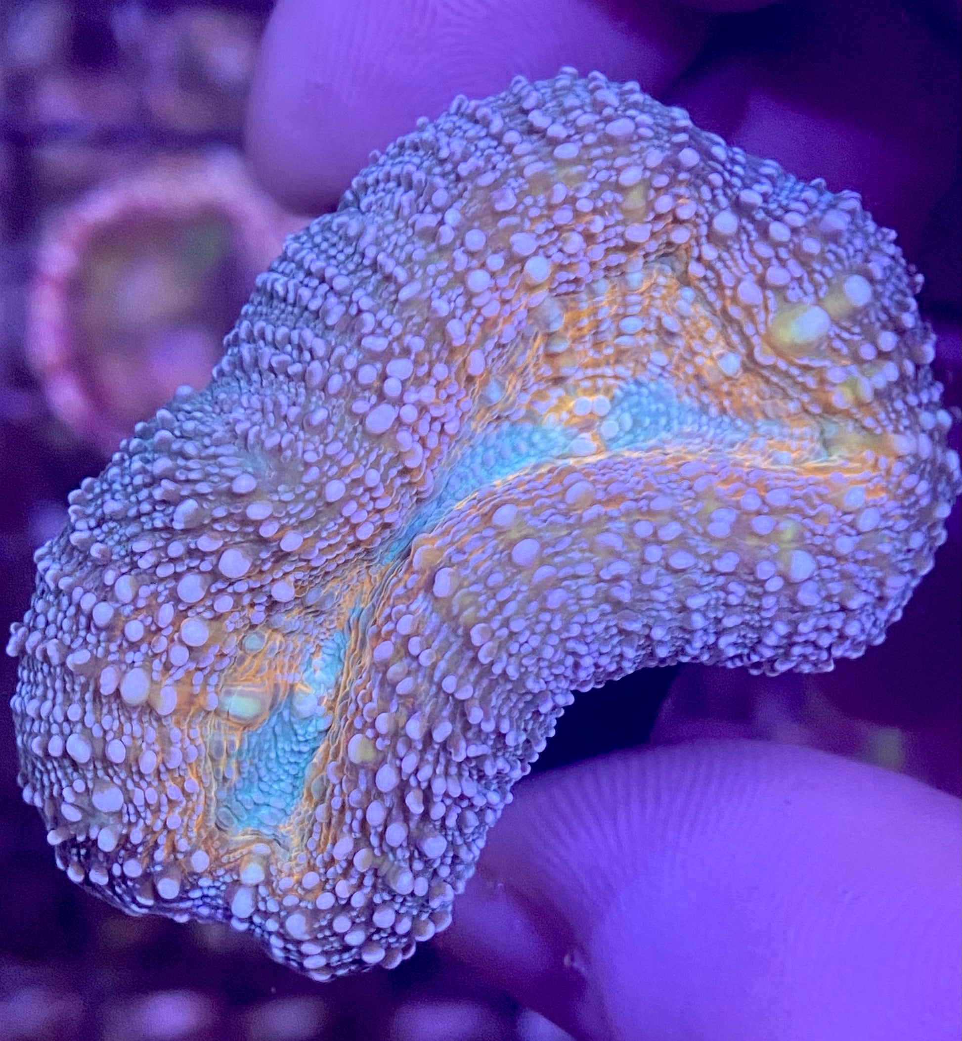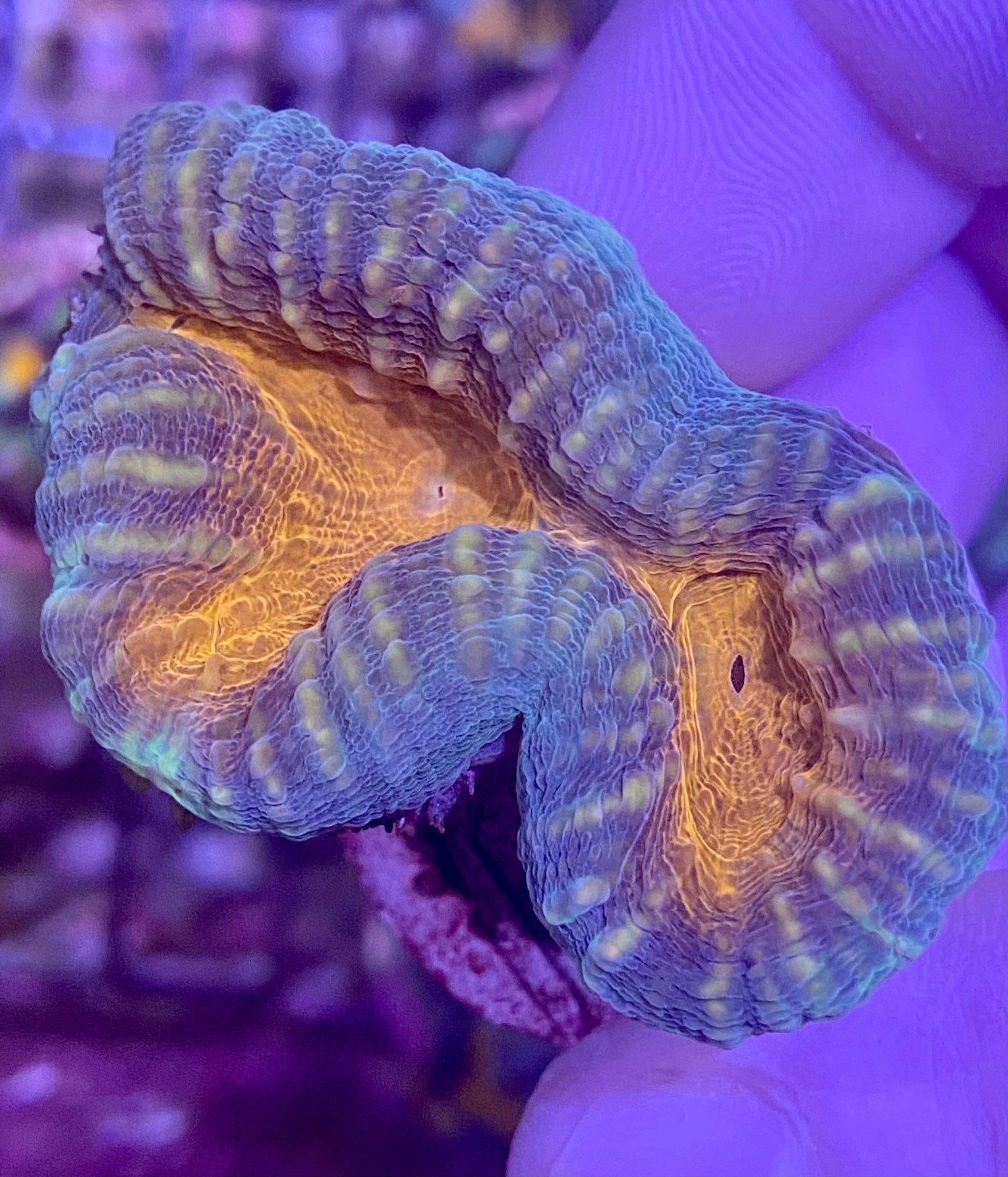 Login to view price.These Large Polyp Stony (LPS) corals are available in a variety of color combinations. Can be acclimated to higher flow and light conditions relative to most other LPS. Has a branching, boulder-like growth form.