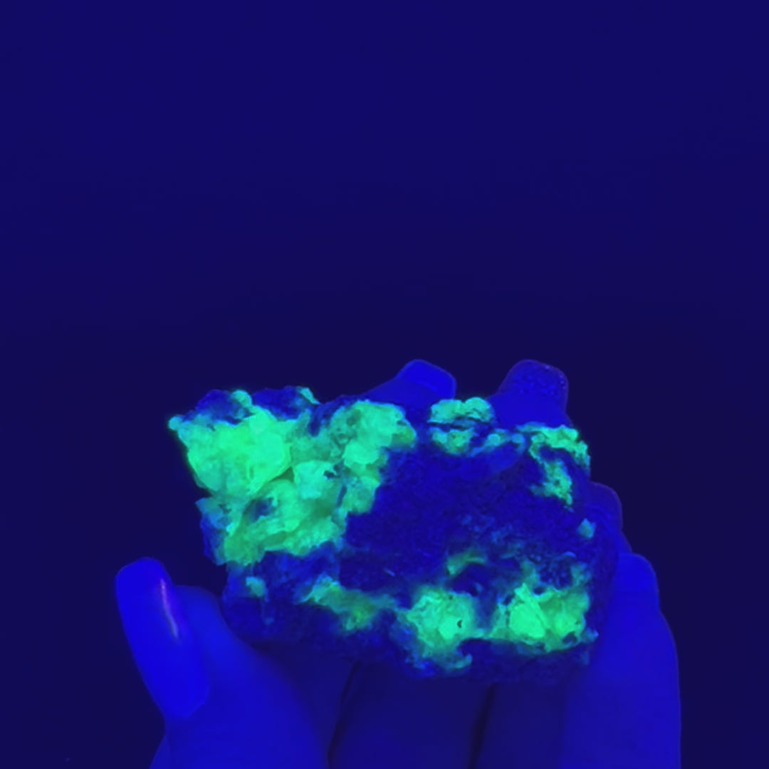 Hyalite or Jalite is a form of opal that due to its chemical composition lacks the sought after colorful iridescence of its more sought after precious stone relative. Hyalite is unique in its own right, however, especially due to its highly fluorescent or UV reactive nature. Typically found in intricate, botryoidal crystal formations, Hyalite is usually clear but can have some color due to the presence of impurities.