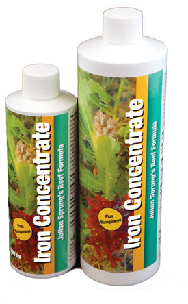 Two Little Fishies Iron Concentrate is a solution that contains the elements iron and manganese, which are essential to the health of all plants, including the symbiotic zooxanthellae in corals and sea anemones, and sea-grasses. Two Little Fishies Iron Concentrate safely replenishes iron and manganese in the proper ratio, which helps maintain optimum water quality for the growth of corals and the macro algae that are commonly cultivated in refugium aquariums.