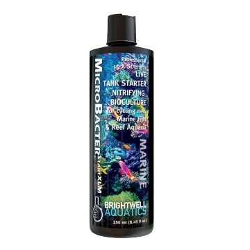 Professional 15x strength powerful live tank starter nitrifying bioculture, with much fewer temperature and shelf life restrictions than competing products, for rapidly cycling new marine fish and reef aquaria and brackish aquariums, and for recovering from overcrowding or disasters where the bacteria bed has been damaged or when adding new fish. It is also quite useful after re-arranging decorations or performing major maintenance, such as cleaning substrates or biological media to "recharge" the nitrifying bacteria population.