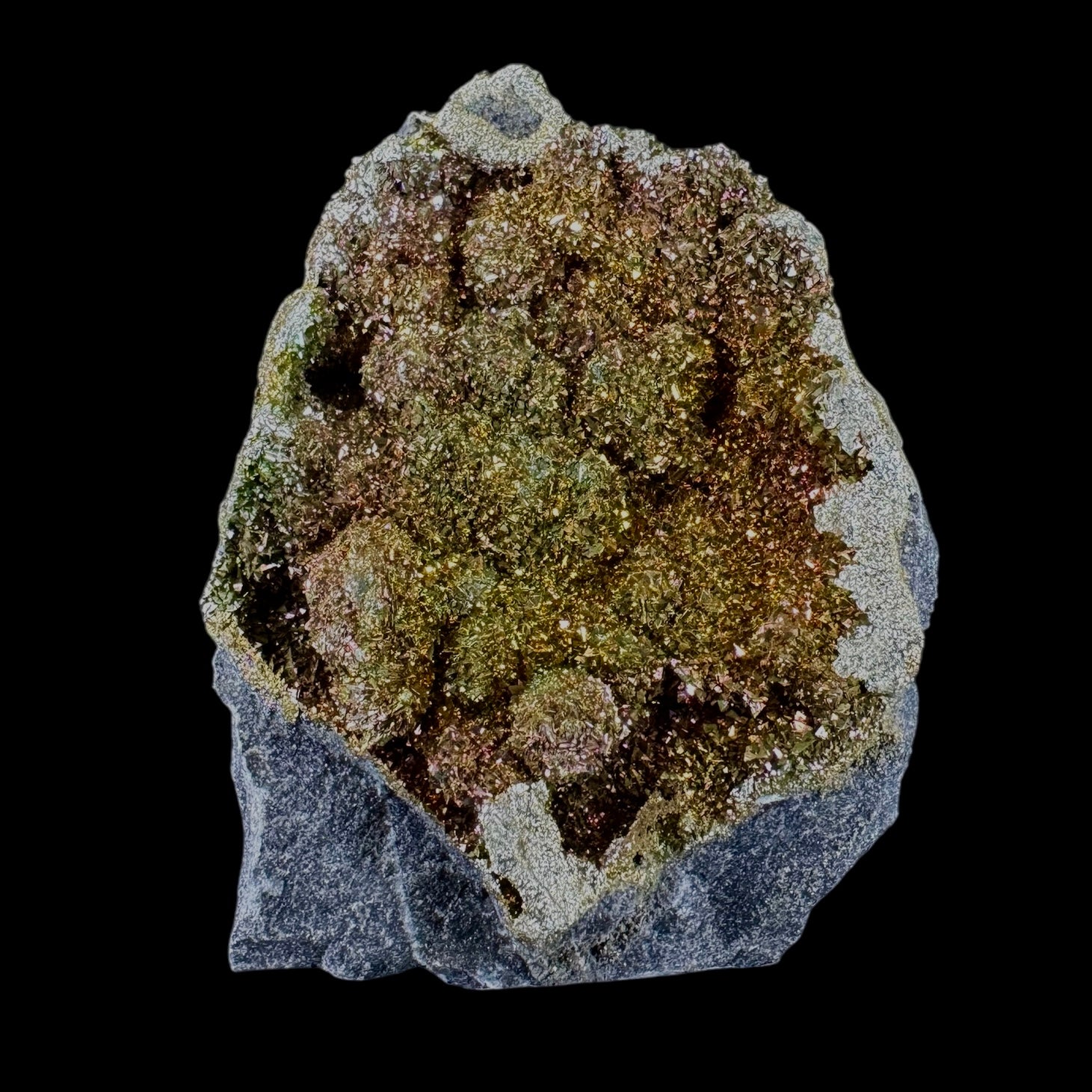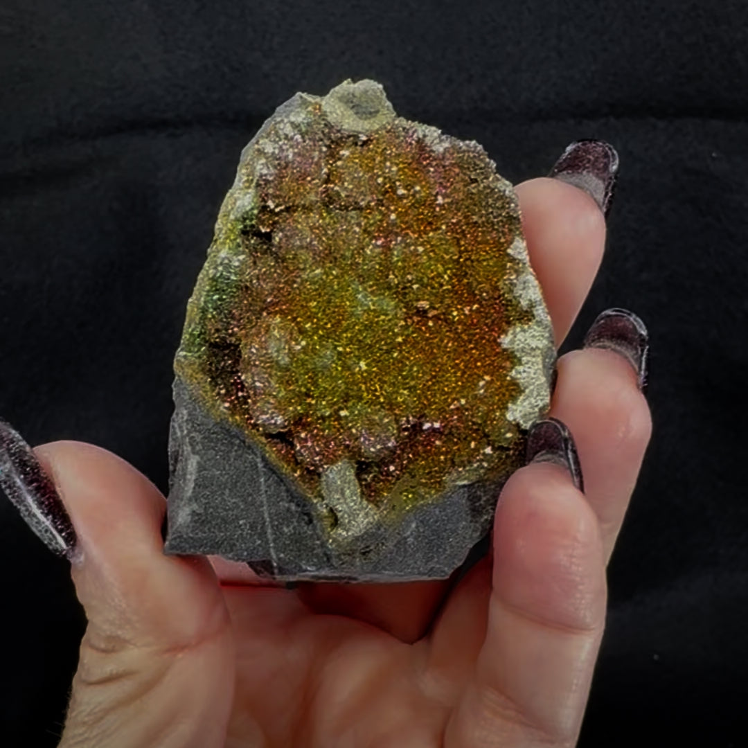 Rainbow or peacock pyrite is a much rarer form of pyrite named for the unmistakable and incredibly vibrant rainbow-colored iridescence it displays. The spectacular display of colors these specimens display can be formed by two different geological processes: the oxidation of pyrite causing ultra-thin layers of iron oxide to form on the surface, or the formation of equally thin layers of secondary minerals due to hydrothermal or other alteration. This naturally occurring form of relatively common pyrite remains highly sought after by collectors as a specimen or for use as a gem or in jewelry.