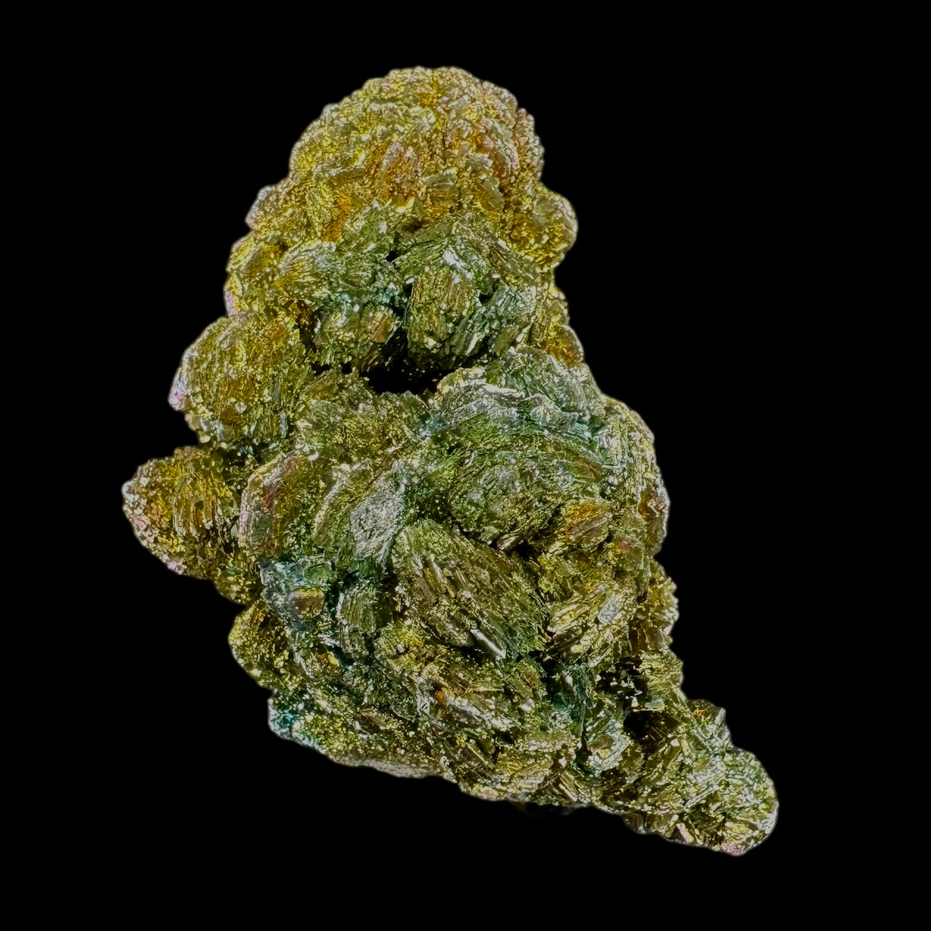 Rainbow or peacock pyrite is a much rarer form of pyrite named for the unmistakable and incredibly vibrant rainbow-colored iridescence it displays. The spectacular display of colors these specimens display can be formed by two different geological processes: the oxidation of pyrite causing ultra-thin layers of iron oxide to form on the surface, or the formation of equally thin layers of secondary minerals due to hydrothermal or other alteration. This naturally occurring form of relatively common pyrite remains highly sought after by collectors as a specimen or for use as a gem or in jewelry.