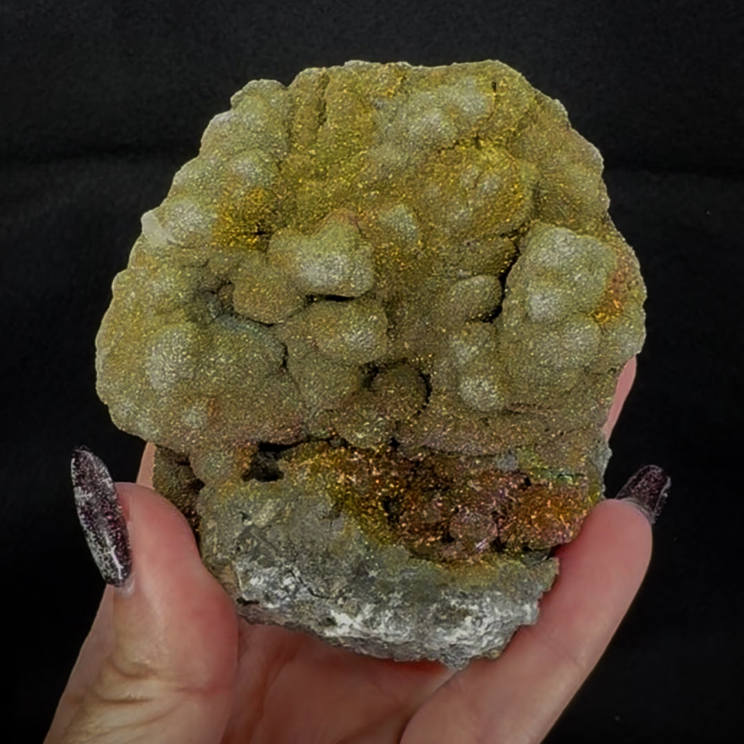 Rainbow or peacock pyrite is a much rarer form of pyrite named for the unmistakable and incredibly vibrant rainbow-colored iridescence it displays. The spectacular display of colors these specimens display can be formed by two different geological processes: the oxidation of pyrite causing ultra-thin layers of iron oxide to form on the surface, or the formation of equally thin layers of secondary minerals due to hydrothermal or other alteration. This naturally occurring form of relatively common pyrite remains highly sought after by collectors as a specimen or for use as a gem or in jewelry.