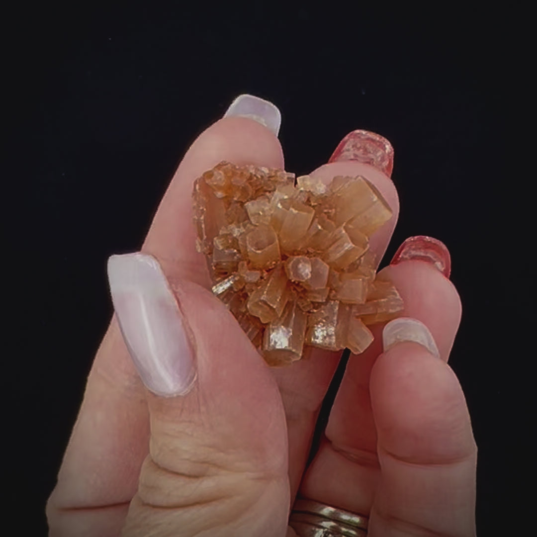 Aragonite is an incredibly variable mineral, and the second most common form of Calcium Carbonate on Earth. Pure Aragonite is typically colorless or white, but chemical impurities can turn it into a range of spectacular colors. These radiating crystal clusters, sometimes referred to as "Sputnik" Aragonite, are tinted lightly red-gold and exhibit a unique twinned habit reminiscent of the antennae surrounding the famed Soviet satellite.Â
